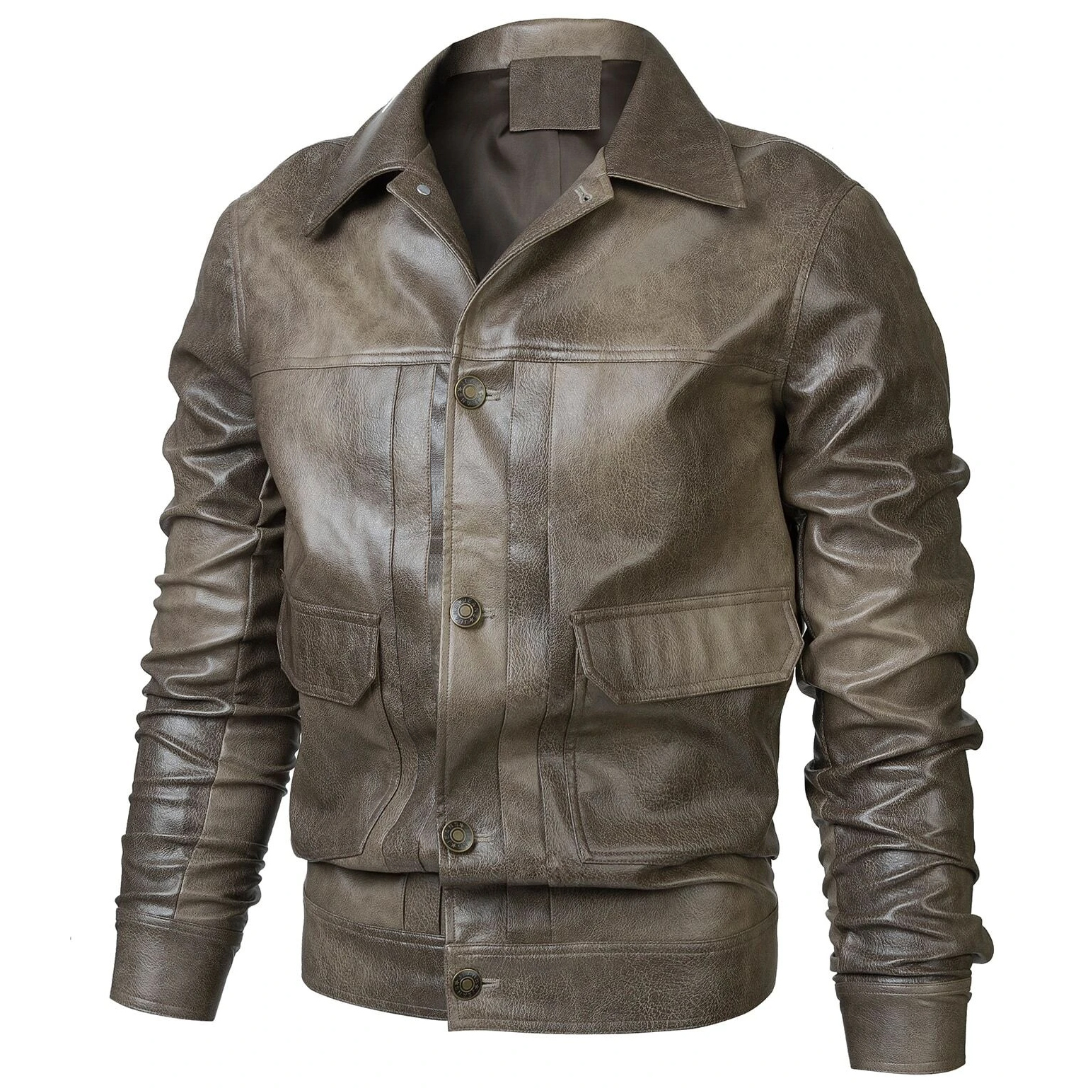 Men's PU Leather Flap Pocket Windproof Motorcycle Jacket