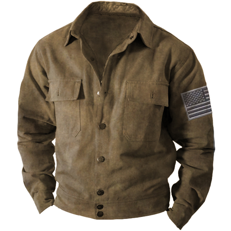 Men's Vintage Lapel Pocket Tactical Jacket