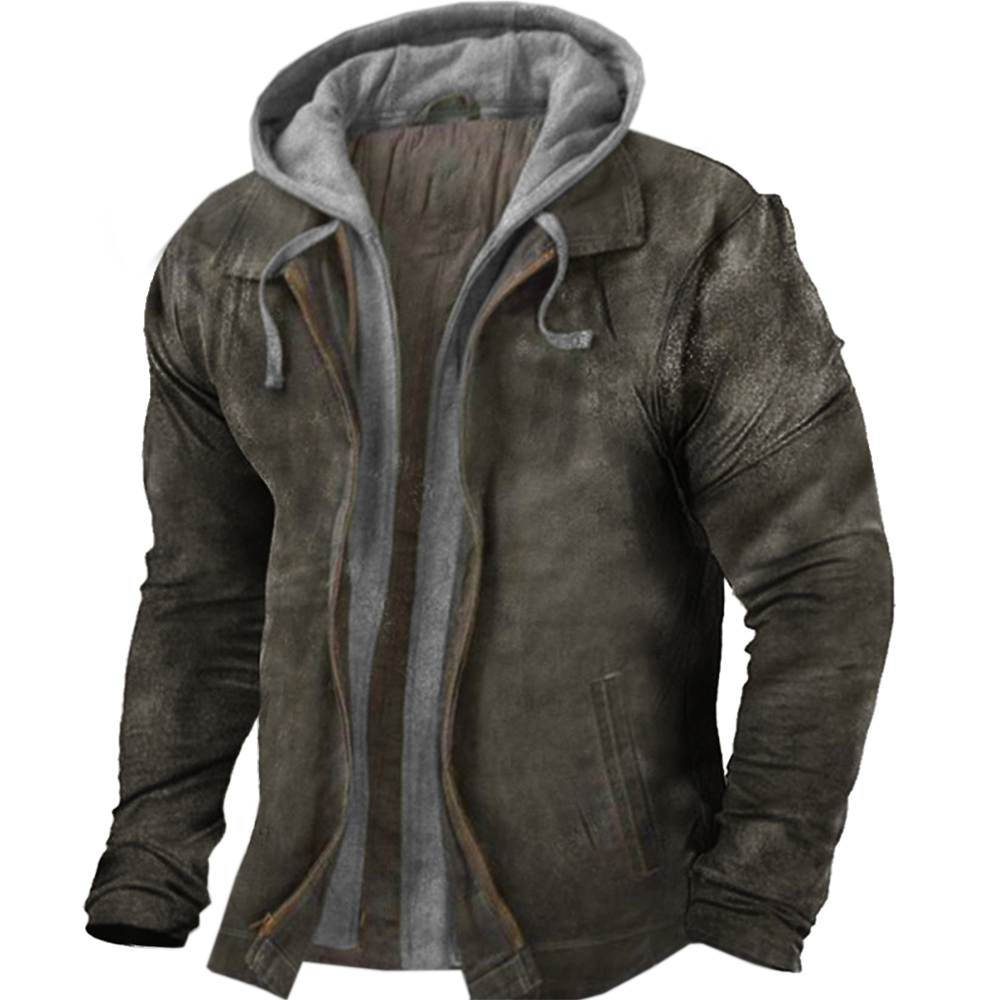 Men's Outdoor Retro Deerskin Fleece Patchwork Hooded Jacket