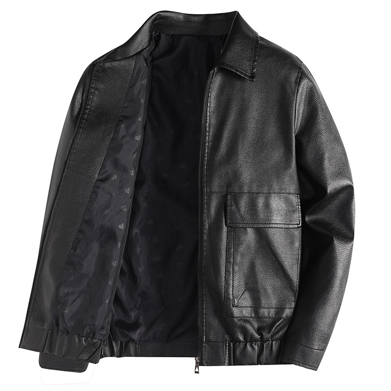 Men's Outdoor Pocket Zipper PU Lapel Casual Jacket