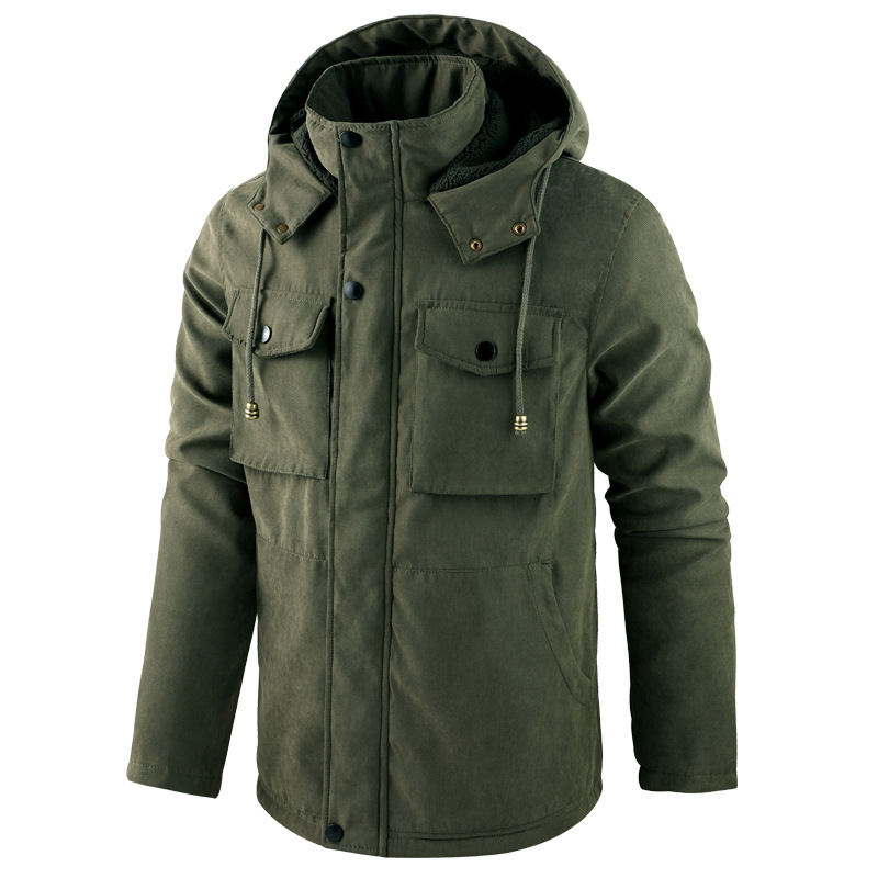 Men's Outdoor Casual Loose Stand Collar Hooded Cotton Jacket