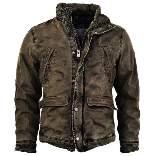 Men's Vintage Distressed Multi-pocket Thermal Tactical Jacket