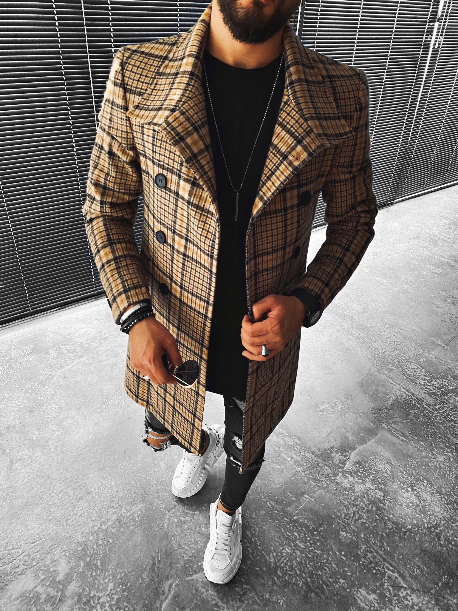 Street Fashion Casual Plaid Texture Slim Long Sleeve Coat