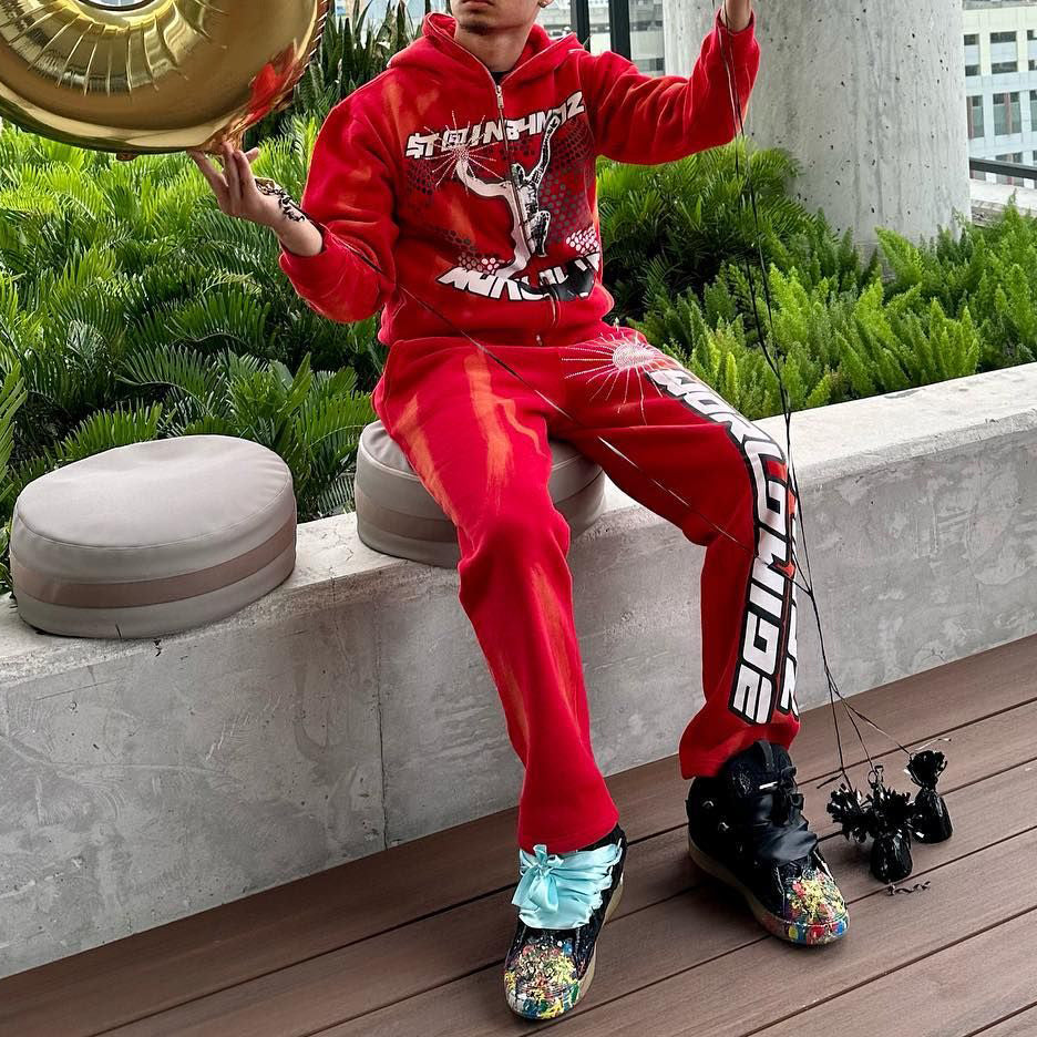 Fashion Print Zipper Hoodie Sweatpants Two Piece Set