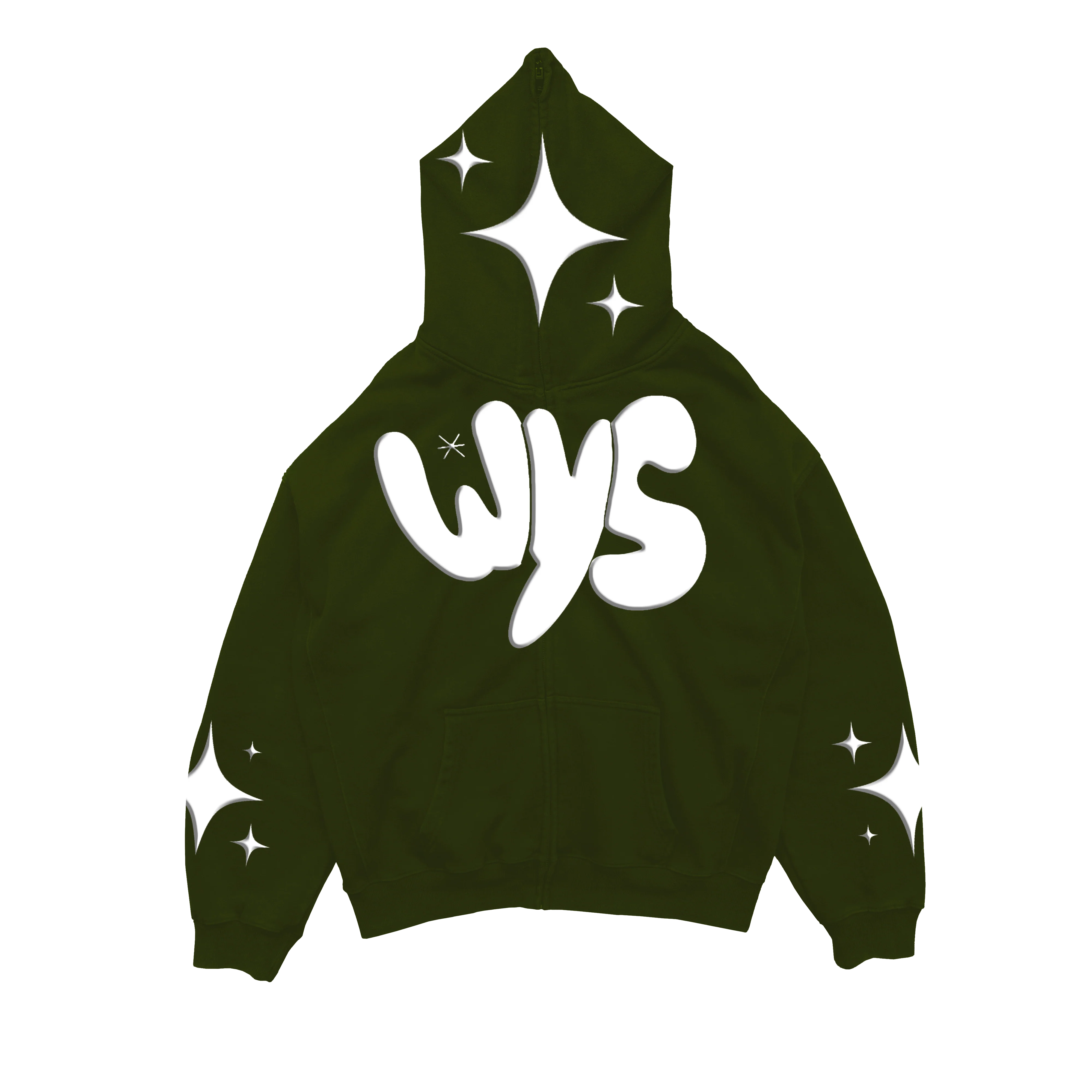 Our Star Full Zip is constructed from a luxuriously smooth fabric that is comfortable on the skin. The hood and chest both have a large puff print design. Embroidered fabric is sewed to create the design on the sleeves! We guarantee that when you wear this, people will turn to look in your direction because it sticks out so brilliantly.